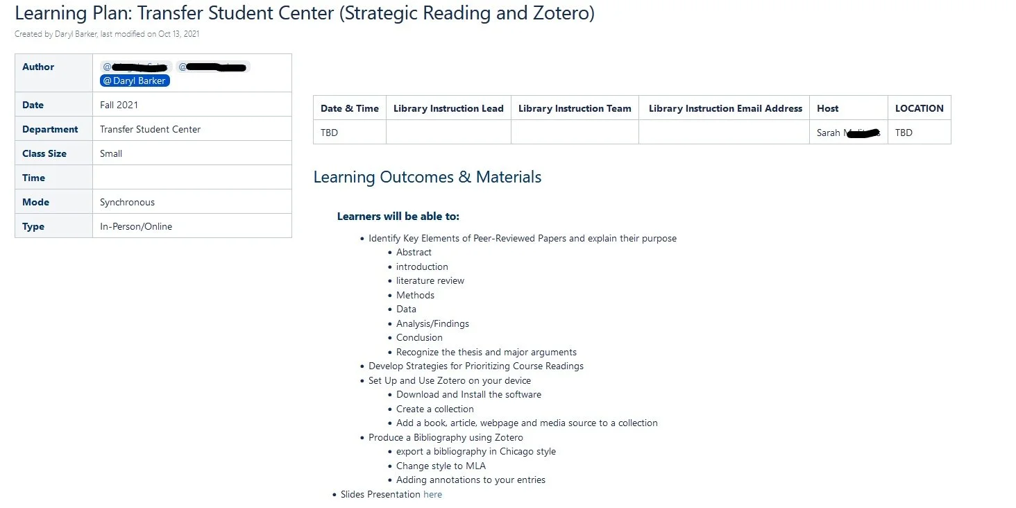 Learning outcomes, developed early on help shape how the rest of the library instruction will come together.