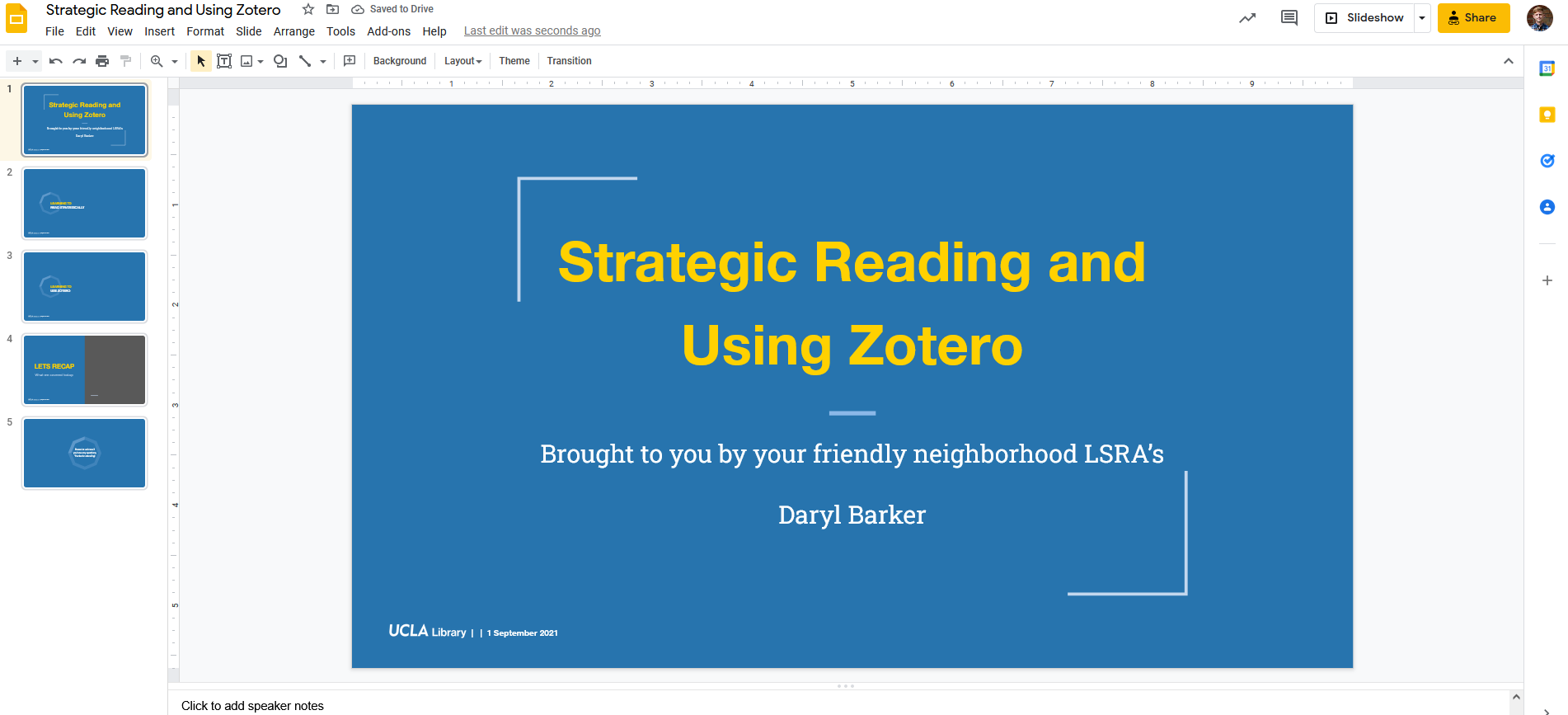 Slides houses a series of template presentations that I will use to build my presentation.