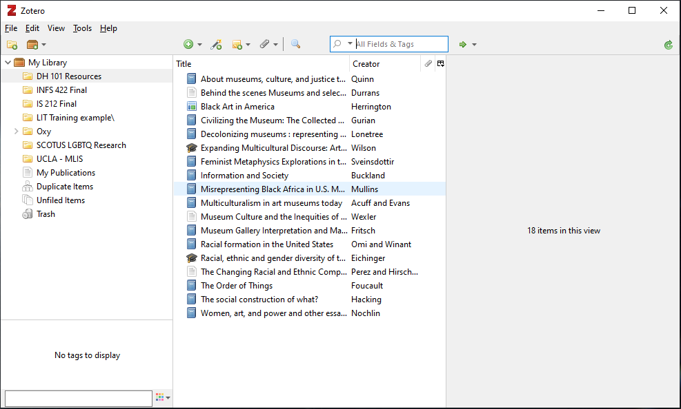 This instruction session is meant to help students learn how to use a citation management system, in this case Zotero. Through working with the Transfer Student Center I learned that their students regularly request instruction on this program, and in response, we are collaborating between the Transfer Student Center, the Veterans Resource Center and Young Research Library to offer this instruction.